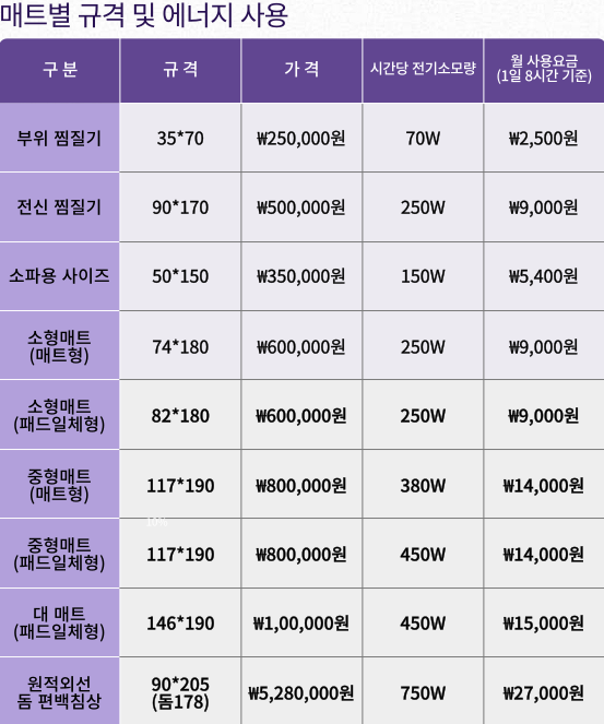 ※ 찜질매트 내부 핵심 구성품 중 면상발열체는 영구적인 제품으로 오랜사용으로 매트 외부 훼손시 유상 교체 제작 해드립니다.