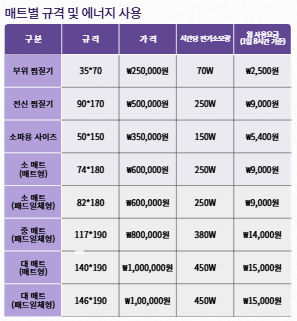 부위찜질 및 쇼파용 찜질매트